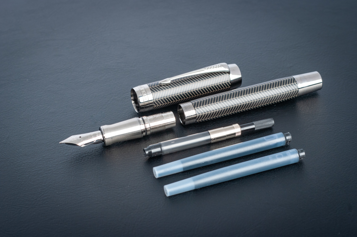 Перьевая ручка Parker Duofold Prestige Centennial Black Chevron CT от официального дилера Parker в Арзамасе. Вы можете дополнительно заказать гравировку, которая подчеркнет Вашу оригинальность и придаст памятность статусному подарку. Все ручки Паркер поставляются в фирменном футляре.